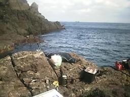 潮はゆるい流れながら、風が強い為仕掛けを狙った本流に流し込むの難しかった。こんな時はL5B〜1号の重い仕掛けで流すのが良いのだが、合い憎3Bまでしかなかったので、M3Bで挑戦したが、仕掛けを狙った潮に乗せるのに苦労した。何度か狙ったポイントに仕掛けが入り、コマセと同調した時にグレがヒットして来た。3時頃から潮が変り、下げ潮狙いでコバエとの間を流す。風が道糸を吹き上げたり岩に押し付けたりするので、流しずらかった。瀬ズレでウキを1個流してしまったが…運良く、裏に居た福岡から来ていた人がそれを回収してくれた。有り難う御座いました。