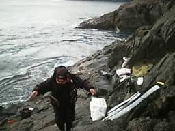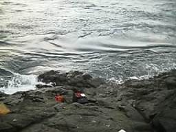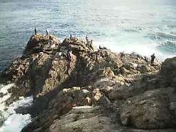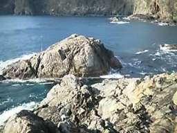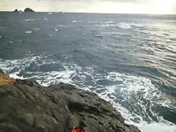 | 昼前のオオバエ北側 時折打ち上げた波飛沫が バシャーンと釣り人を直撃 する事も有り、寒くて危険な 状況で有った |