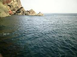 ボスも安心して竿出し出来る 日向ぼっこの釣りとなった 瀬際は左流れ、沖は下げ潮の終盤、右流れで始まった 先にボスがアタリを捕らえた。 良く引く…35センチのサンノジが上がって来た。 私は、左手のサラシの先から潮に乗せて流しながらグレを 呼び込む様に同じ筋を繰り返し流すがアタリ無しで昼になった。 やがて潮は満ち込みに変り始めた… |