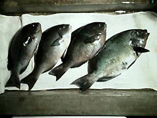 ◇ 午後2時、見回りに来た宮丸でビシャゴに瀬替りした。先客は早々にクーラー満タンの釣果で早上がりだった。それじゃと気負って入れ替わりに渡礁したのだったが、満ちに変った潮は簡単に釣らせてくれなかった。それでも何とか私が4匹(28〜37a),連れが1匹クロを引きづり出して納竿とした。