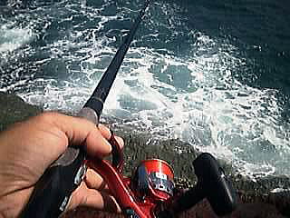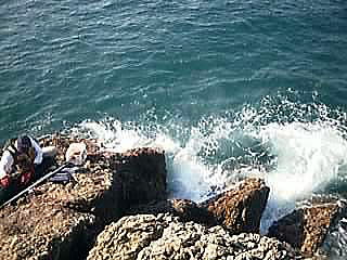 急いで船長を電話呼んだ。竿を取り、改めてバカ波の恐さを思った。もし、2人並んで始めの釣り座で竿を出していたら、間違い無く我々も海に落ちて居ただろう。それも、尖った岩にぶつかって骨折か、頭を打って失神して海中に没していたかも知れない。改めて、ぞ〜っとした。
