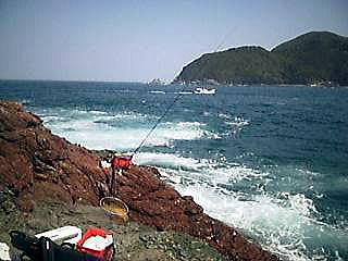 仕掛を作り替え、一服しながら全体を見直した。本流の潮が満ち込みに変っている、全体的に穏やかに流れていた。しかし、相変わらず沖からのウネリは大きく小さく岩に砕け、タチバナ、スリオトシにぶち当たった波が高くカベを這い上がりしぶきを上げては砕けて、大きなサラシが払い出していた。