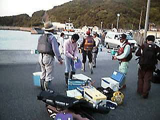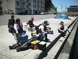 はやる心を抑えて宮丸を待つ、今日も元気な 釣りバカの面々 |