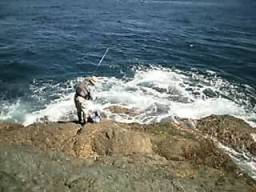 満ち込みの潮が沖を流れている…が、小鼻の正面から右側には大きな張り出し根が有り、始めの内は海面に出ていた。左側にも短いのが出ている。正面に少しだけ取り込み可能な場所が有る。そこを挟んで私が左側に、後藤さんが右側に釣り座を取った。潮のあたり具合と正面に出来る大きな渦と沖本流との間のボーズ…風は北から北西風だったがやがて西風に変ったのか右手のナガウドの方からやや強く吹いていた。