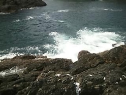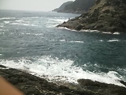 オオバエ‐B その直後、 次ぎのウネリが来て、一気に打ち越して 行きました。 *正面の白っぽい崖の下に道具だけが 置き去りにされて居ました。 尚、釣り人の姿は有りませんでした。 |