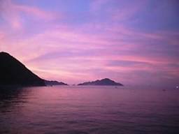 〇綺麗な夕焼け空になり、海上にはモヤが 広がって、穏やかな夕マズメを向かえた。 *この後、イカ釣りオバサンは3人になった。 *オバサン達は、エギにゼンゴを巻いて電気ウキ 仕掛で潮目を狙って流していた。 *オバサン達のお邪魔にならない場所でラジオのナ イター中継が終わるまでやって見たが、一杯もつれず。 一方、オバサン達も大苦戦で、タマに乗っても手前 でバラス事数回…今日はどうした事だろうと嘆いて いた。一番釣った人で4杯だった。 イカ釣り船もこの日は早く引上げてしまった。 |