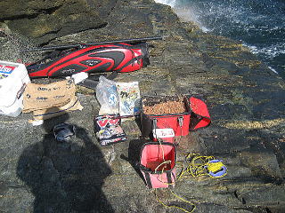 小休止して、クロ釣りの仕掛を用意した。コマセはパン粉、グレスペ、V9遠投の組み合わせにオキアミ1角。明るくなって潮の流れと瀬際の沈み根を観察した。まだ満ち潮が残っていて、暫くは釣りになりそうだった。