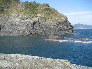 釣り座左手 沖黒方向 突端の灯台が見える |