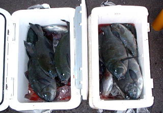 ☆左は師匠一人の釣果(撮影の為水と氷を除いて有る)