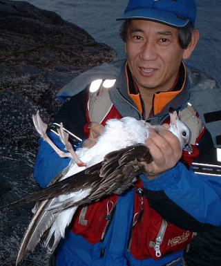 ハプニング発生!、 少し遠投気味に流していた師匠の仕掛けにかもめが絡まった! 暫し凧上げ状態でヤリトリが続く、私が戻ってカメラを用意した時は既に手繰り寄せて、絡まったウキから下のハリスを外している所だった。