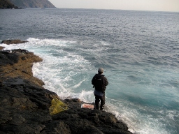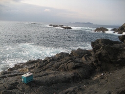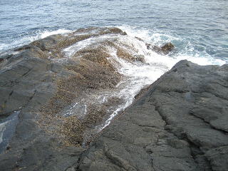 | 満潮時は完全に波が洗う状態 撤退するタイミングを逃すと、寒中水泳だ! |