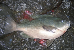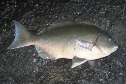 海水は終始濁りがあり、海中や海底を観察する事は困難であったが、ここはかなり底根が荒れていて、ハリ掛かりしたグレが猛スピードで底の岩影に逃げ込むか、足元の荒れた底壁に突っ込んでしまう。