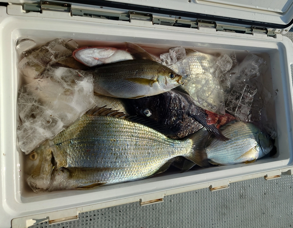 昼頃にヘダイに混じってチダイと真鯛が釣れた。その間にもイサキ狙いの竿もコマセを詰め替えて誘ってみたものの…一行にアタリが無かった。どうも今日の潮ではイサキが回遊してこない様だ。