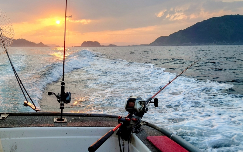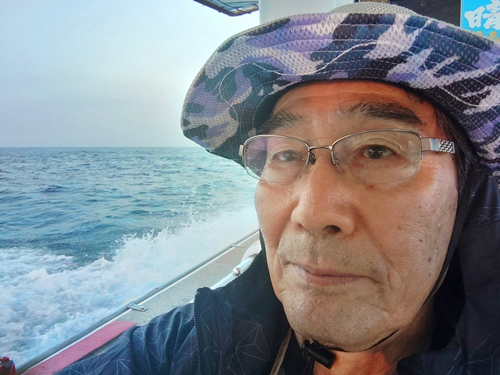 | 津久見沖から鶴見沖に向かって穏やかな海を 走って行ったが…沖に出てからはウネリが出て来た 釣り座は左舷オオドモ 電動リール竿で胴付仕掛け 予備にイカメタル竿 |