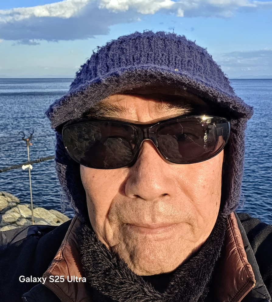 夕間詰は滿潮、風が強く吹き海面が波立って 釣りどころではなかった しっかり着込んで夜釣りに備えた |