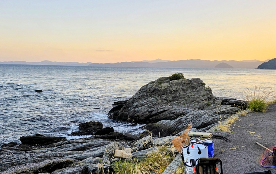 エアーポンプのクーラーには元気の良いアジが30匹確保出来たので、衛藤さんが待っている地磯に移動した。