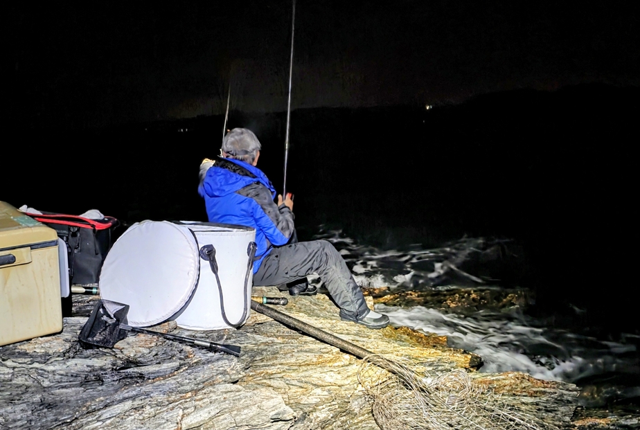日没直後に板井さんも到着して 釣り座に道具を運んだ |