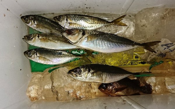 初めはゼンゴ(一ツッパリの小アジ)だったが、それに30〜35pのアジが混じって釣れたのでキープ。