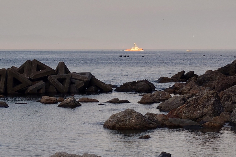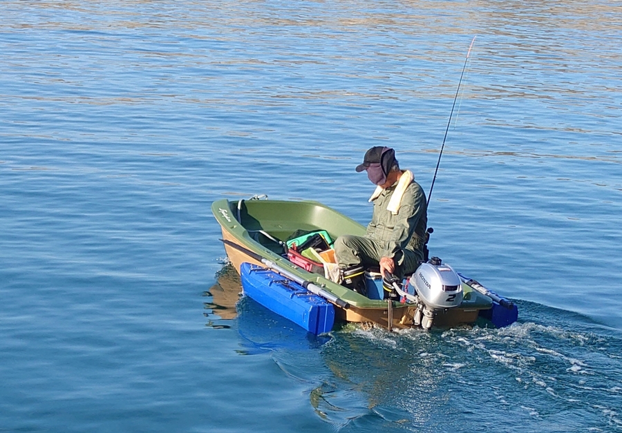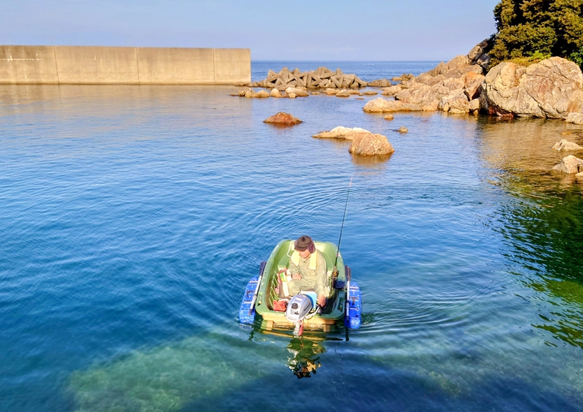 海は穏やかで北西の微風、ボートにイカ釣りの道具を乗せ暗くなり始めた海にボートを出した。