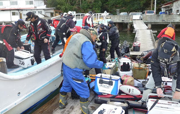 午後3時過ぎ、栄福丸が仙崎の回収に来た。次々と」回収して行き、沖黒、地磯と全員を回収して満員でNFCに帰港した。