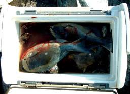 釣果の一部 こんなサイズでクーラー満タン (未だ、水溜りに沢山泳いでいる) |