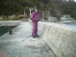 何時しか日は傾き、夕暮れが迫って来た頃、1人の釣り人が“おじゃましまーす”と言ってやって来た。彼は佐伯の住人で、10月から毎週末各地を点々と釣り歩いているベテランで、この日もゼンゴを釣ってからここにやって来たそうだ。お世辞にも立派な道具立てとは言えないが使い込んだ物ばかりだった。彼は、波止場の先端に行き、電気ウキをセットし、ゼンゴをセットして重そうな竿を振った。比較的手前に仕掛けを投入してゼンゴを泳がせていた。仕掛けを入れてから竿を置き、車の方へ何かを取りに戻って行った・・・。